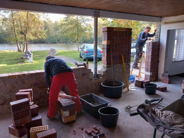 Bis zur Fertigstellung unseres Anglerheim und mit viel Kraftanstrengungen